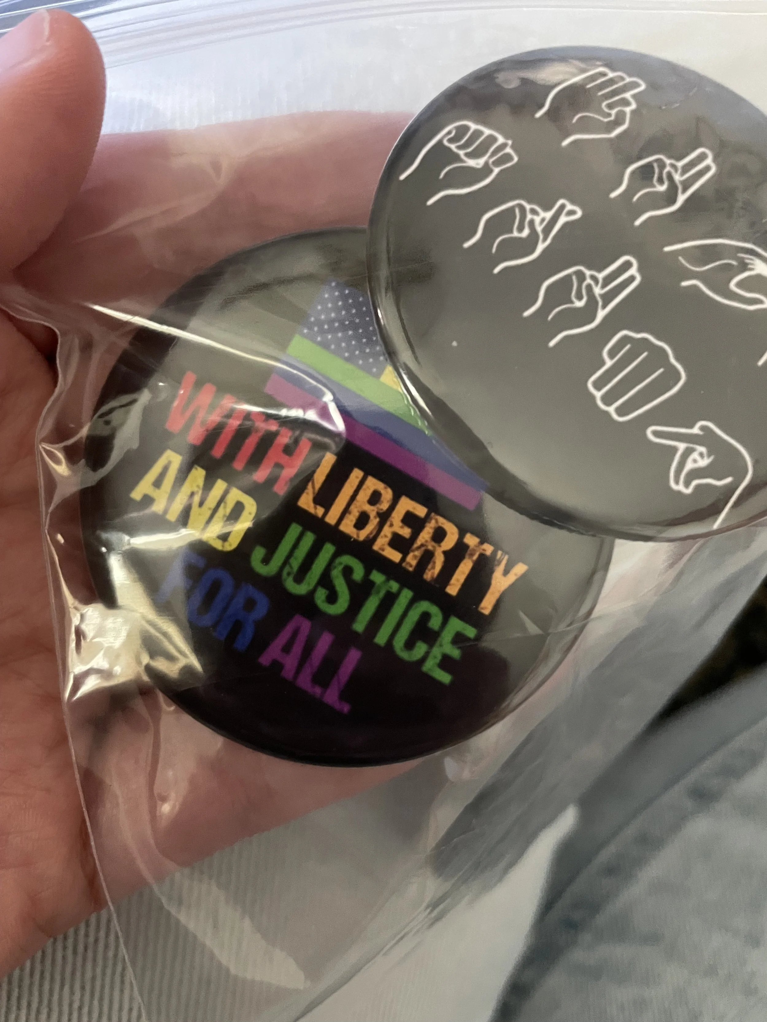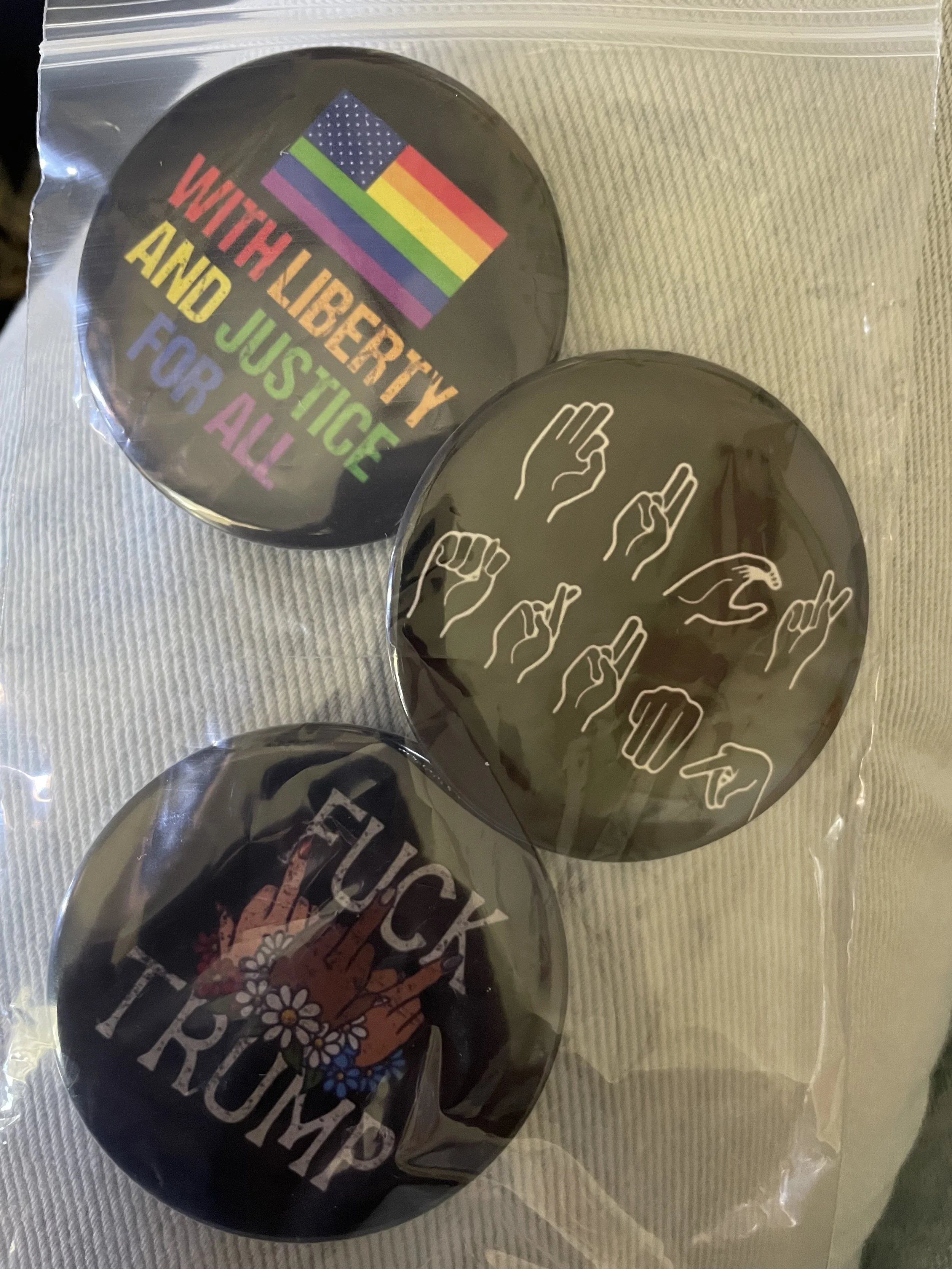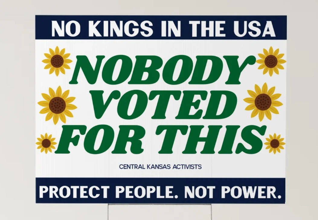 CKA shirt $25.00 Garden Yard Sign $10.00 "No Kings" Bumper Sticker $5.00 "No Kings" Yard Sign $10.00 FDT ASL BUTTON $5.00 FDT BUTTON $5.00 ALLY BUTTON $5.00 CKA NO KINGS TEE $25.00