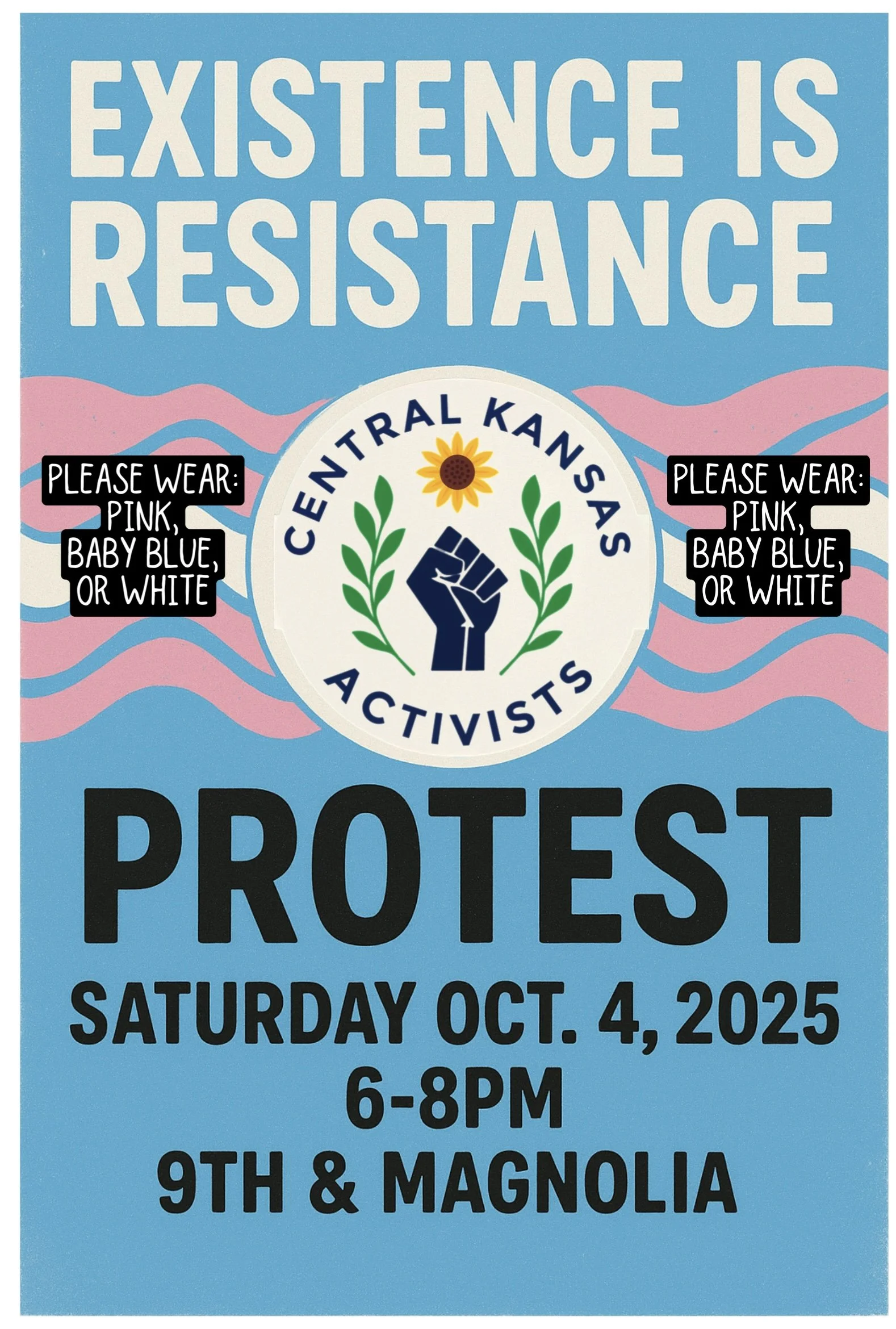 Follow local organizers or coalition pages such as “Central Kansas Activists” on Facebook. For updates, volunteer roles, and opportunities to stay involved beyond July 17th. www.centralkansasactivists.org